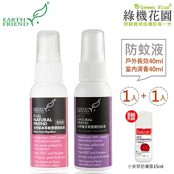 終極選購指南!【Earth Friend】天然寶寶防蚊液2件式《戶外長效+室內清香》,贈:綠機花園小安第舒膚露隨身瓶牌子好