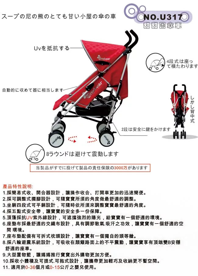 具備了哪些功能的湯尼熊 Tony Bear 甜甜圈傘車(紅色)好用?如何選購